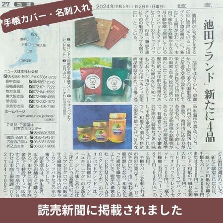 大阪池田ゲストインフォメーションにて、「With U」の池田ブランド認定品「手織り手帳カバー」「手織り名刺入れ」が掲載されています。