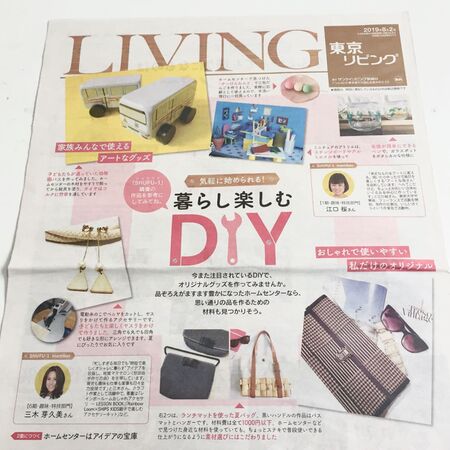 東京リビング新聞(8月2日発行、1〜2面)の暮らしを楽しむDIY特集に作品を掲載していただきました。