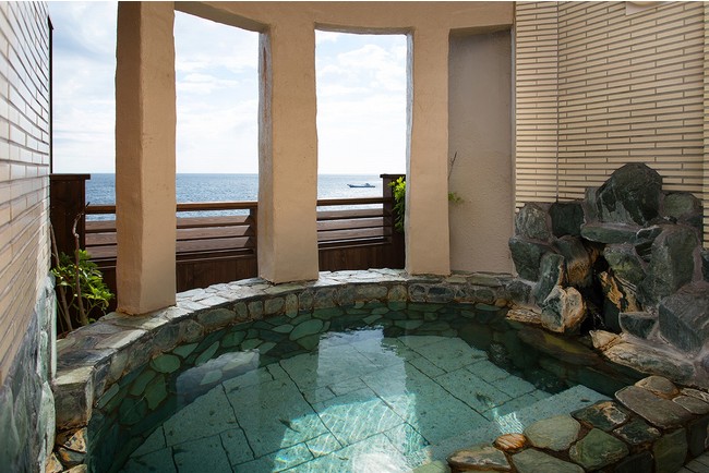 まだ大浴場を躊躇してしまう方でも、海を見晴らす無料の貸切風呂があり、館内で安心して湯浴みをご堪能いただけます。