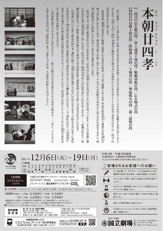 独立行政法人日本芸術文化振興会主催、「初代国立劇場さよなら公演」令和4年12月文楽公演『本朝廿四孝』が2022年12月6日 (火) ~2022年12月19日 (月)に国立劇場 小劇場(東京都千代田区隼町4-1)にて上演されます。