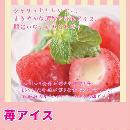 贅沢にイチゴをまるごと使用し、中にとろ~り濃厚な練乳アイスを詰めた商品。