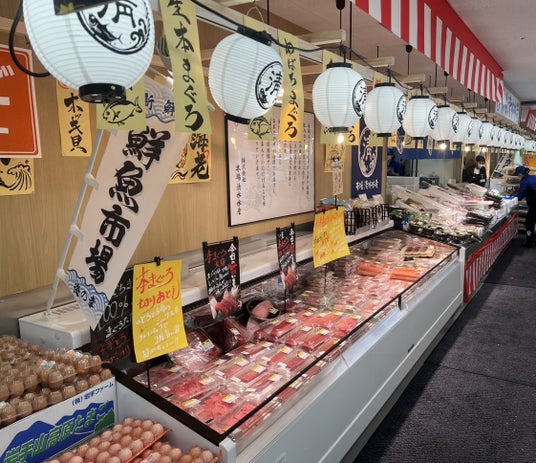 「西葛西 場外市場」の最大の魅力は、鮮魚テナント「本上清水水産」が市場から直送で仕入れる新鮮な海の幸です。毎朝早くから市場でプロの目で厳選された魚介類が直接運ばれ、その日のうちに販売されるため、鮮度は折り紙付きです。オープン以来、飲食店の方や地域の方々にもご満足いただける品質と品揃えとなっています。