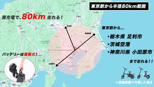 1回の充電で最大走行距離80km大容量バッテリーを搭載。