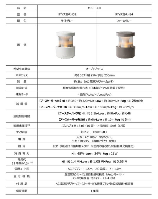 洗いやすい、くつろぎの加湿器「MIST 350(ミスト 350)」発売