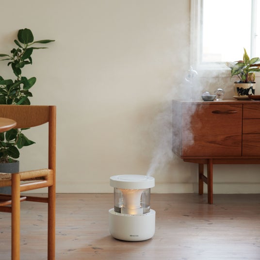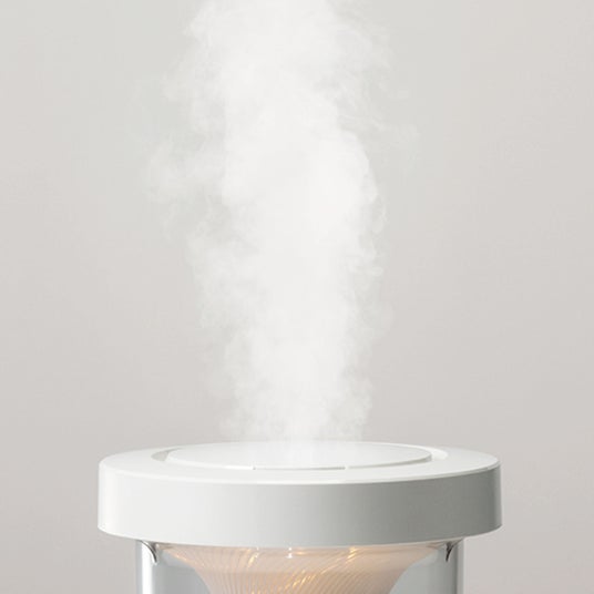 超音波方式加湿器は水を煮沸しないためタンク内に雑菌が繁殖しやすく手入れが面倒だというイメージがありました。本商品は湿気に触れる全パーツの取り外しが簡単で、タンクには凹凸がなく洗いやすいため清潔な状態を保つことができます。温湿度センサーで雑菌等が繁殖しづらい湿度40~60%の状態を自動でキープすることも。適切な湿度が保てれば冬場の乾燥した時期も安心です。水の交換もしやすいのでいつもきれいな水で加湿をすることが可能です。デザインもシンプルで洗練されており、タンク内をやわらかな灯りが照らし、水の粒が集まって小さな雲海のような霧がたゆたい、スーッと晴れていく様が見られる「Fog」モードは見飽きることなくリラックスできます。
