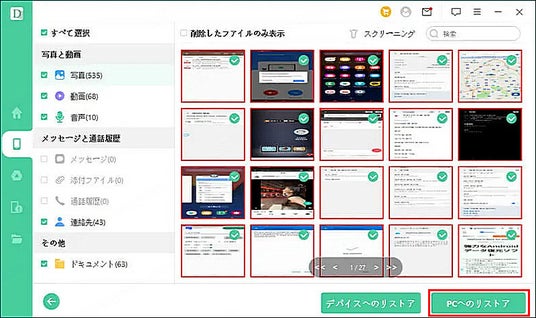 D-Back for Androidを使えば、Androidデバイスから消えたデータを復元できる以外に、データをパソコンへ転送してバックアップすることもサポートしますよ。スキャンされたデータをPCに復元を選択するだけでいいです。