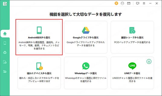 D-Back for Androidを利用しては、バックアップの有無にもかかわらず、ルート化なしでAndroidデバイス本体から完全に消えた写真や動画、連絡先、通話履歴など11種類以上のデータを復元可能です。