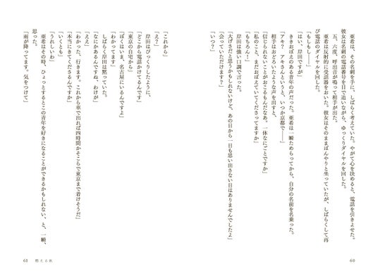 対談解説は、幻冬舎社長の見城徹。なぜ、見城徹なのか。幻冬舎の名付け親はたしかに五木寛之だが、それは理由ではない。いやむしろ、「燃える秋」の解説は見城徹以外には考えられなかった。なぜなら、見城徹こそが、角川書店時代に「野性時代」誌において「燃える秋」を生み出したからであった。