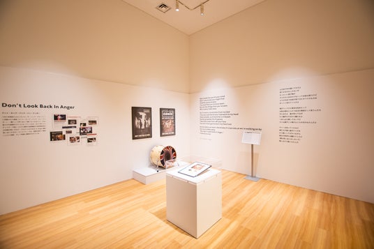 その後、これまで発表したオリジナル・アルバムごとに、ヒストリー・ウォールが登場。そこには、収録曲の直筆歌詞(ノエルとリアムによるもの。その筆跡の違いも見どころ)や、来日公演のスケジュール表など、作品やライブからは知ることのできなかったアルバムの表情、魅力を感じ取ることができる。また、ヒストリー・ウォール以外にも、彼らが演奏したギター(ケースを含め)などの楽器や獲得したトロフィー、さらにライブ告知をはじめとするポスターなど、英国にある彼らの所属事務所が特別提供してくれたアイテムがトータル200点以上も公開。ノエルとリアム、ギャラガー兄弟を中心にしたバンドの呼吸がダイレクトに伝わってくる、圧巻の構成になっている。