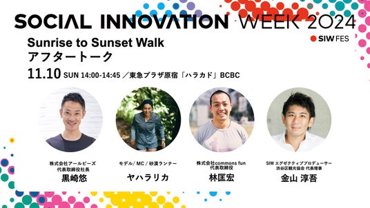 一般社団法人渋谷未来デザイン(代表理事:小泉秀樹、以下渋谷未来デザイン)は、ソーシャル&カルチャーデザインの祭典「SOCIAL INNOVATION WEEK 2024(以下SIW)」を10月18日(金)~11月10日(日)まで開催します。より良い社会に向かうための新しいビジネスアイデア、音楽やアートが見出すこれから都市の可能性、ストリートから生まれる新しいカルチャーの芽生え、テクノロジーが見せてくれる未来の生活、次の時代を刺激するメッセージなどを、多種多様な企業、クリエイター、アーティストともに作り上げたプログラムを続々と公開しています。ぜひご注目ください。