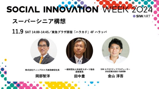 渋谷区が掲げる「思わず身体を動かしたくなる街へ」の実現に向け、包括連携協定を結んだ、株式会社ティップネスと渋谷区スポーツ協会で、シニア層の新たなスポーツに対する関わり方について議論します。SIW MARKETとして実施したスポーツ適性診断の結果をもとに、シニア層に対するスポーツの多面的な価値や新しいスポーツについて議論をすることで、スポーツのアクセスがしやすいまちづくりをめざします。