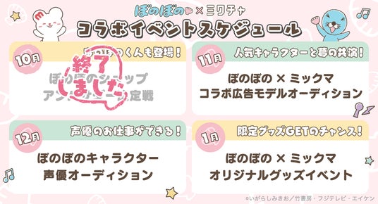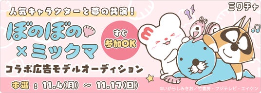 【11月開催】人気キャラクターと夢の共演!ぼのぼの×ミックマ コラボ広告モデルオーディション