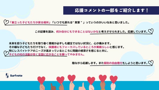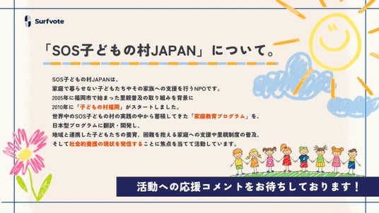 【NPO法人『SOS子どもの村JAPAN』の活動について紹介します!】Surfvoteで応援コメントを募集しています!