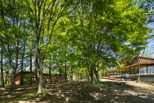 『Karuizawa Commongrounds』は、森の中に、書店「軽井沢書店 中軽井沢店」をはじめ、インターナショナルスクール、カフェ、飲食店・コワーキングスペースなどが点在する複合施設です。