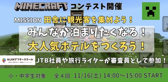 株式会社NIJIN(本社:東京都江東区、代表取締役:星野達郎)が運営する小中学生を対象としたメタバース学童『NIJINアフタースクール』は、JTB社員の方々を審査員に迎え、マインクラフトコンテストを開催します。