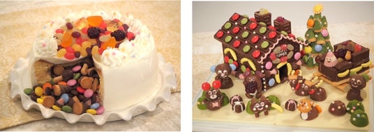 1.宝石グミのびっくりケーキ 2.お菓子の家