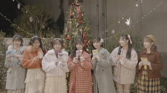 真中:今日は私たち一足早くクリスマスの撮影をさせてもらったんですけど、今年で一番きれいなクリスマスツリーが見られた気がします!初めてビデオを撮る時に上から雪が降ってきて、グミを光にかざした時が本当にきれいで、すごく心がトキメキでいっぱいになりました。