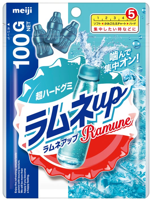 爽快感が味わえる、ハードな食感のラムネ味のグミです。