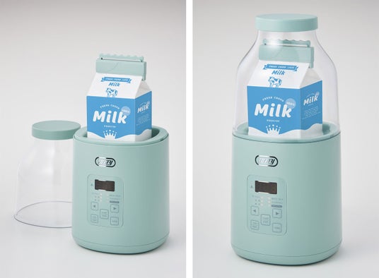 「Toffy ヨーグルトメーカー」は、1Lの牛乳パックを使って、カンタン操作で自家製ヨーグルトが作れるヨーグルトメーカーです。牛乳に種となるヨーグルトを入れ、モードを選択してスイッチONするだけ。約8時間で自家製ヨーグルトが完成します。1Lの牛乳パックをそのまま使えば、カンタン&お手入れもラクラク!自家製ヨーグルトをはじめ、飲むヨーグルト、甘酒、納豆、サラダチキンなどもモードを選択して作ることができます。また、好きな時間や温度を設定できる「マニュアルモード」を搭載しているので、食材に応じて細やかな設定が可能。発酵や低温調理など、料理の幅も広がります。カラーは「ペールアクア」「ミルキーホワイト」の2色展開。牛乳瓶のようなかわいらしいフォルムが特長です。