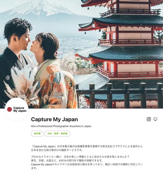 日本最大級の出張撮影事業を展開する株式会社ラブグラフによる海外から日本を訪れる旅行客向けの撮影サービス