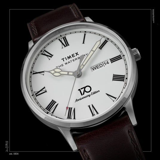 今回発売する特別な<ウォーターベリー>ワンダラーウォッチは、この史実に基づき、<ウォーターベリークロックカンパニー>としての起源に敬意を表しています。光沢感のあるホワイト文字盤に<ヤンキー>を踏襲したローマンインデックスをラッカー仕上げであしらい、6時位置に170周年の記念ロゴを配しています。裏蓋には170年にわたるウォッチメイキングの歴史とアメリカを代表するアイコニックなブランドであることが誇らしげに刻まれています。