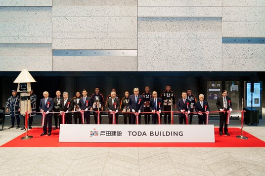 戸田建設株式会社(本社:東京都中央区、社長:大谷 清介 以下、当社)は、東京都中央区京橋一丁目にて開発を進めておりました超高層複合ビル「TODA BUILDING」を2024年11月2日(土)に開業いたしました。これにより、2016年に都市計画決定の京橋一丁目東地区計画が完了し、街区「京橋彩区」もグランドオープンとなります。11月2日に開催したオープニングセレモニーでは、中央区副区長、地元町会長並びに京橋彩区エリアマネジメント代表理事、当社代表取締役社長 大谷によるテープカットセレモニーのほか、江戸町火消による木遣りや纏振りなどの演舞が執り行われました。「TODA BUILDING」について、当社代表 大谷は「多様な価値を生み出し続けることはもちろん、これからも京橋の街とともに歩み、新たな文化を創出して参ります。」と述べ、アートの力に満ちた新たな門出を賑やかに盛り上げました。