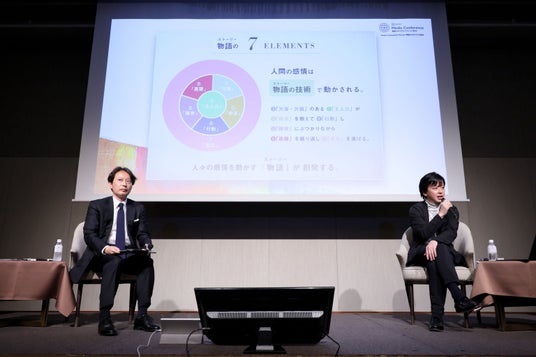 メディアと広告の未来への可能性を探るトークイベント「ミライトーク」。写真は映画ドラマプロデューサーの山田兼司さんと講談社・長崎亘宏のセッション。