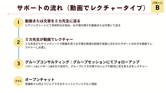 - 動画サポートプラン:29,000円(税込)/伊藤美佳によるビデオアドバイス+グループコンサルティング