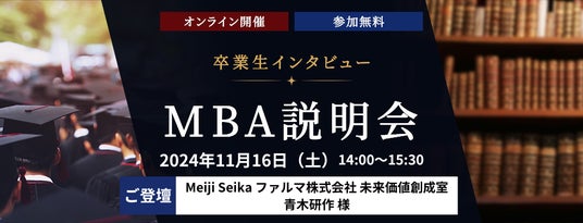 人生100年時代を迎え、キャリアにおける「マルチステージの人生」と「幅広い選択肢」が浸透しています。同時に、テクノロジーの進化により企業活動の可能性や自由度が激変し、組織の力を最大限に生かすマネジメント力やコラボレーション力、経営スキルも重要視されています。この背景から、MBAの学習ニーズが高まり、文部科学省が発表した系統別在籍者数から推定すると、日本では年間約2,500人がMBAを取得しています。この度、当社では、MBAをお考えの方あるいはスキルアップを目指す方を対象に、リアルな声を聴ける場として、本イベントを開催いたします。