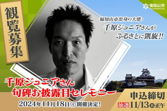 【観覧募集】千原ジュニアさん句碑お披露目セレモニー開催! 福知山市出身の大使・千原ジュニアさんがふるさとに凱旋!