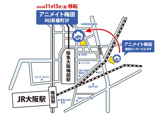 株式会社アニメイトは、大阪・梅田にある「アニメイト梅田」を2024年11月15日にNU茶屋町3Fへ移転リニューアルオープンいたします。