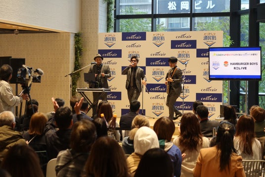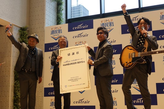 それに先立ち、11 月1 日(金)に北海道札幌市の商業施設「COCONO SUSUKINO」にて、セントレア公式応援サポーター(※)で、北海道で人気の3ピースバンドHAMBURGER BOYS(ハンバーガーボーイズ)を迎え、お披露目イベントを開催いたしました。