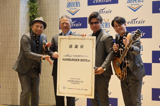 中部国際空港株式会社が、名古屋・中部地域やセントレアの魅力を発信することを期待して、各就航先で活動するアーティストなどを応援サポーターに任命している。HAMBURGER BOYSは2023年に任命。