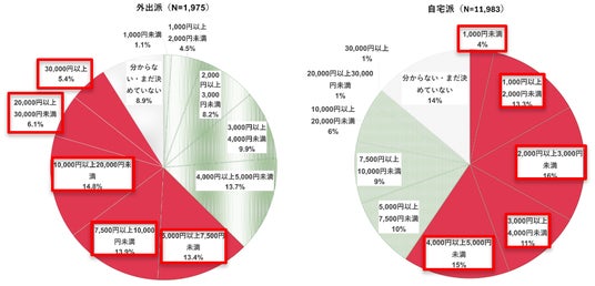 クリスマスの飲食にかける予算については、外出派は過半数が5,000円以上と回答した一方、自宅派は約6割が5,000円未満と、自宅派の方が支出を控える傾向という結果でした。