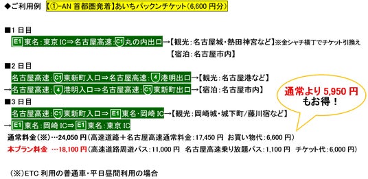 3.販売プラン 高速道路周遊パス+名古屋高速乗り放題パス+あいちパックンチケットがセット