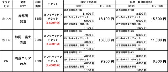 その他の販売プラン・価格などの詳細については、NEXCO中日本公式WEBサイトをご確認ください。