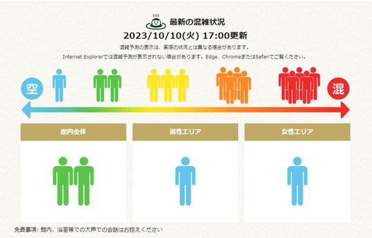ニフティ温泉サイトにて、期間限定クーポンや各店舗の混雑状況を配信しています。