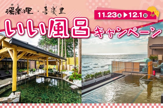 日帰り温浴施設『湯楽の里・喜楽里』では、「いい風呂キャンペーン」を11月23日(祝・土)より開催!