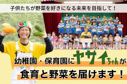 “農と野菜のスター”として活躍の場を広げているヤサイちゃん(所属事務所:株式会社ザファーム 本社:千葉県香取市 代表取締役:武田泰明 以下ザファーム)は、11月9日(土)より新たにクラウドファンディングを展開。子供たちにもっと野菜のおいしさや農業の楽しさを届けたいという想いから、全国の保育園・幼稚園訪問を目標としています。併せて、ザファームが運営する農園リゾートTHE FARM(以下THE FARM)にて、2025年1月25日(土)に、支援者様へのリターンとしてヤサイちゃんが主催する野菜の収穫イベントを開催いたします。