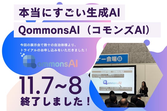 Polimill株式会社(本社:東京都港区、代表取締役:横田えり)は、2024年11月7日・8日に開催された「第4回デジタル化・DX推進展」大阪において、AI業務支援ツール「Qommons AI」の無料体験会を無事に終了いたしました。本展示会では、元町長による特別講演を含め、多くの来場者から関心と反響をいただき、今後の自治体支援に向けた力強い一歩となりました。