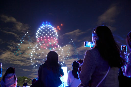時が経つと、モノリスを背景に幻想的なピアノの演奏が始まり、約300機の低空飛行ドローンが東京の夜空に舞い上がる。新時代の光のショー「STAR MEMORIES」の開幕だ。夜空に描かれる星の誕生から生命の始まり、そして未来へと続く希望の光をテーマにした物語に、涙する観客もいた。