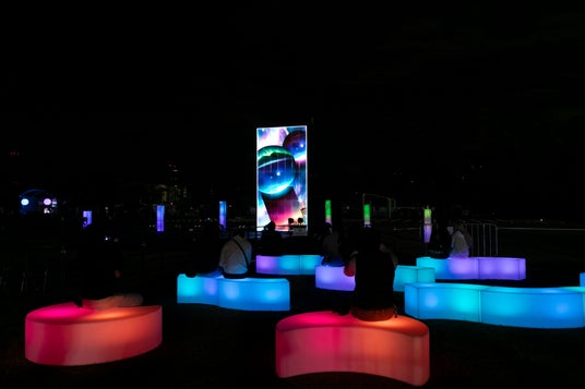 ゲートを超えると、直径約50mの巨大コロシアムが目に飛び込んでくる。約1万本の無線制御型次世代ペンライト「FreFlow(R)(フリフラ)」で彩られたこの空間では、人気J-POPメドレーやオフィシャルアンバサダー「にじさんじ」の楽曲メドレーに合わせて、星のように瞬く光の数々が観客を魅了する。踊り出す人、動画を撮る人で会場は大いににぎわった。