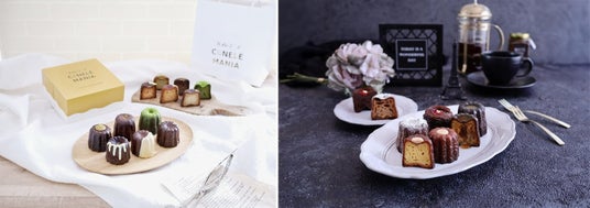 ▲(左)こだわりがつまったカヌレは食べ比べもおすすめ (右)東京ミッドタウン限定の新作カヌレ