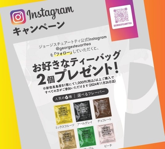公式Instagramフォローで、お好きなティーバッグを2個プレゼント。