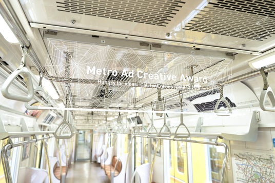 蜘蛛の巣を模した特殊中づりが銀座線・丸ノ内線をジャック