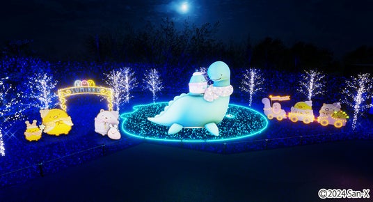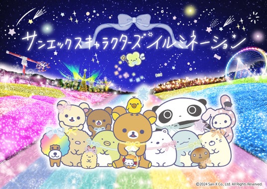 「さがみ湖イルミリオン」は、都心から約50分、広大な土地と高低差を生かした光の絶景を満喫できるイルミネーションイベントで、本年は「リラックマ」や「すみっコぐらし」などのサンエックス株式会社の人気キャラクターが集結する「サンエックスキャラクターズイルミネーション」エリアが登場します。「リラックマ」「すみっコぐらし」「たれぱんだ」「アフロ犬」「こげぱん」「にゃんにゃんにゃんこ」「センチメンタルサーカス」の7キャラクターと一緒に写真を撮れるイルミネーションスポットが多数設置されるほか、さがみ湖イルミリオンオリジナル【ぶらさげぬいぐるみ】などのコラボグッズやノベルティ付きコラボフードも楽しめます。