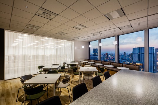 2024年3月下旬に移転した現在オフィス、虎ノ門ヒルズステーションタワー。広さは全オフィスの約2.5倍になり、全社内外の交流の場としてバーカウンターがあるラウンジも併設されました。