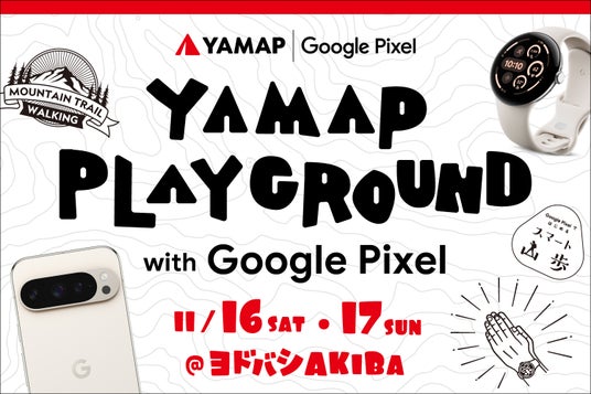 「地球とつながるよろこび。」を企業理念に掲げアウトドア事業を行う株式会社ヤマップ(福岡市、代表取締役CEO 春山慶彦、以下ヤマップ)は、Google Pixel とコラボレーションイベント「YAMAP PLAYGROUND with Google Pixel」を開催します。デジタル技術を活用した新しい山歩き(さんぽ)スタイルを提案する本イベントは、2024年11月16日(土)・17日(日)の2日間、ヨドバシカメラ マルチメディアAkibaで実施します。