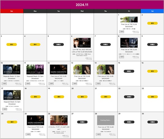 ▼「THE CLUB NAGASKI」 11月イベントカレンダー