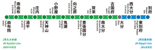 1.日豊本線・久大本線の別府駅~由布院駅(16駅)を追加いたします。